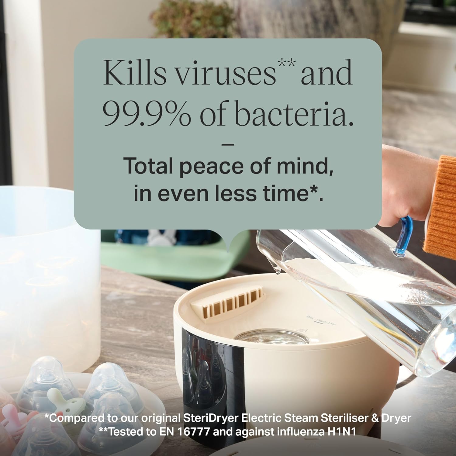 - Baby safe: 100% natural steam kills viruses** and 99.9% of bacteria, for your peace of mind